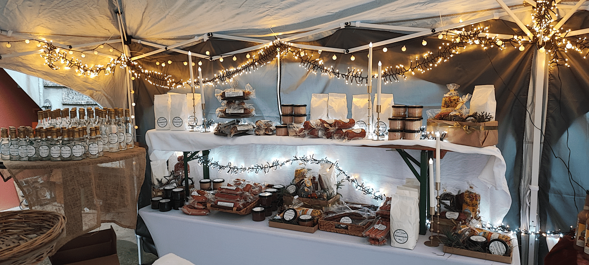 Am Samstag, den 6. Dezember 2025, öffnet die Familie Geier ab 15:30 Uhr gemeinsam mit über 20 regionalen Ausstellern ihre Türen. Freuen Sie sich auf ein stimmungsvolles Fest auf dem Hof sowie entlang der Schlossstraße mit einer vielfältigen Auswahl an hochwertigen Produkten und kulinarischen Köstlichkeiten.