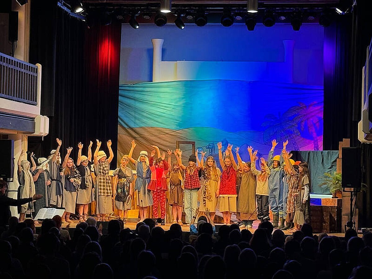 Kinder im Alter von 9 bis 14 Jahren führen jährlich ein Kindermusical unter Leitung des Dekanatskantors Göttemann in der Stadthalle Haßfurt auf.